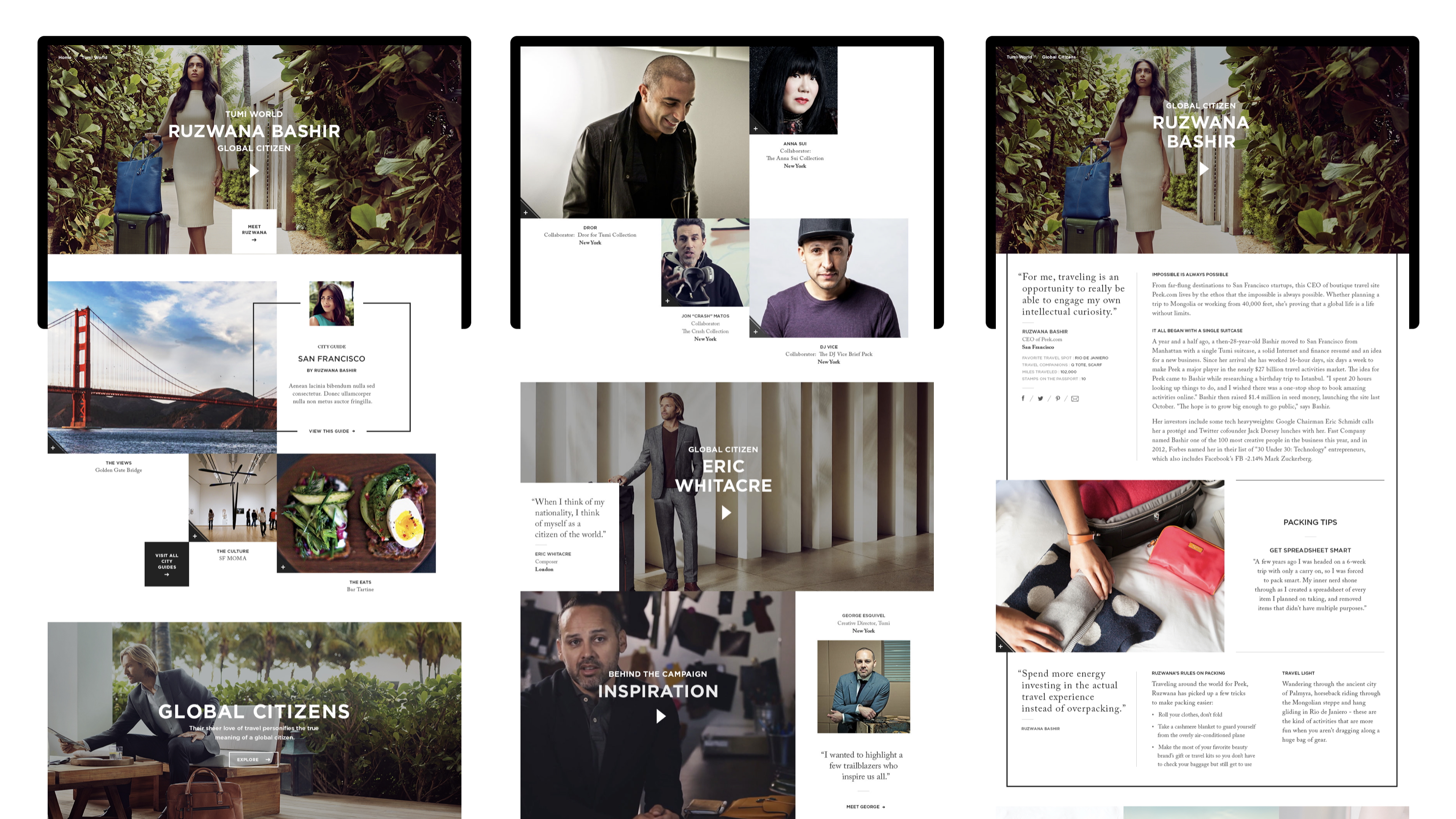 We redesigned the end-to-end Tumi.com experience to seamlessly blend commerce with rich editorial content, creating a much more immersive path into product discovery. The new experience highlights the craft behind Tumi products while delivering a best-in-class shopping flow. We also introduced editorial city-guides featuring things to do in each destination, enriched by brand ambassadors’ perspectives and curated product picks.