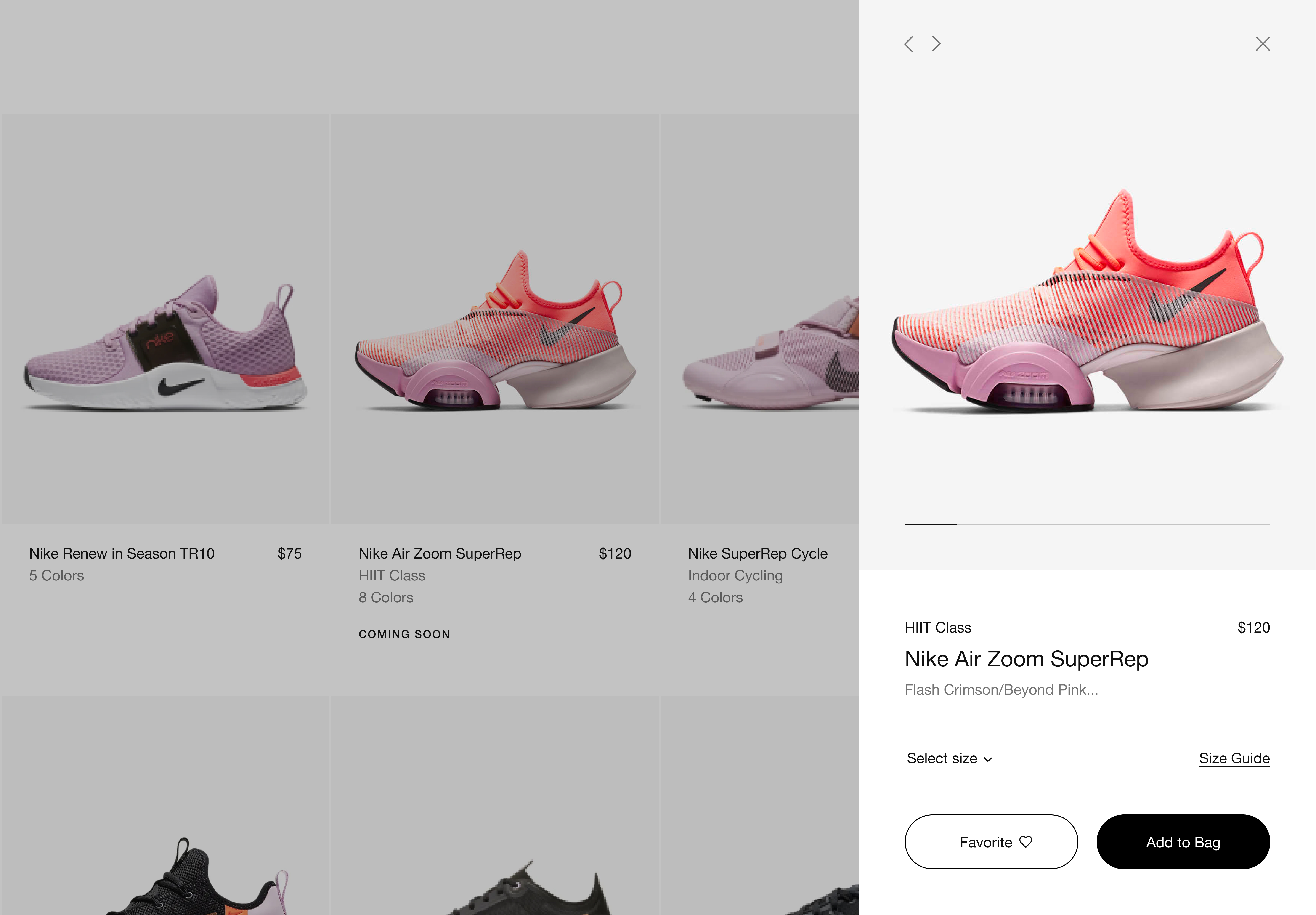 Flexibility and speed were core principles. Shoppers can now select their size, choose colors, and add to bag directly from the grid, eliminating the need to visit a PDP when they don’t have to. We also introduced adjustable grid views that let users decide how much they want to see at a glance, reducing visual noise and making it easier to compare products side-by-side from a styling perspective.